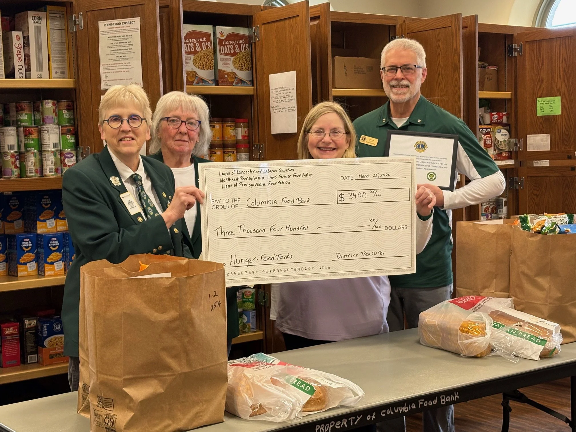 Lions Club Internaional District 14-D presented The Columbia Food Bank with a $3,400 grant to help fight hunger.